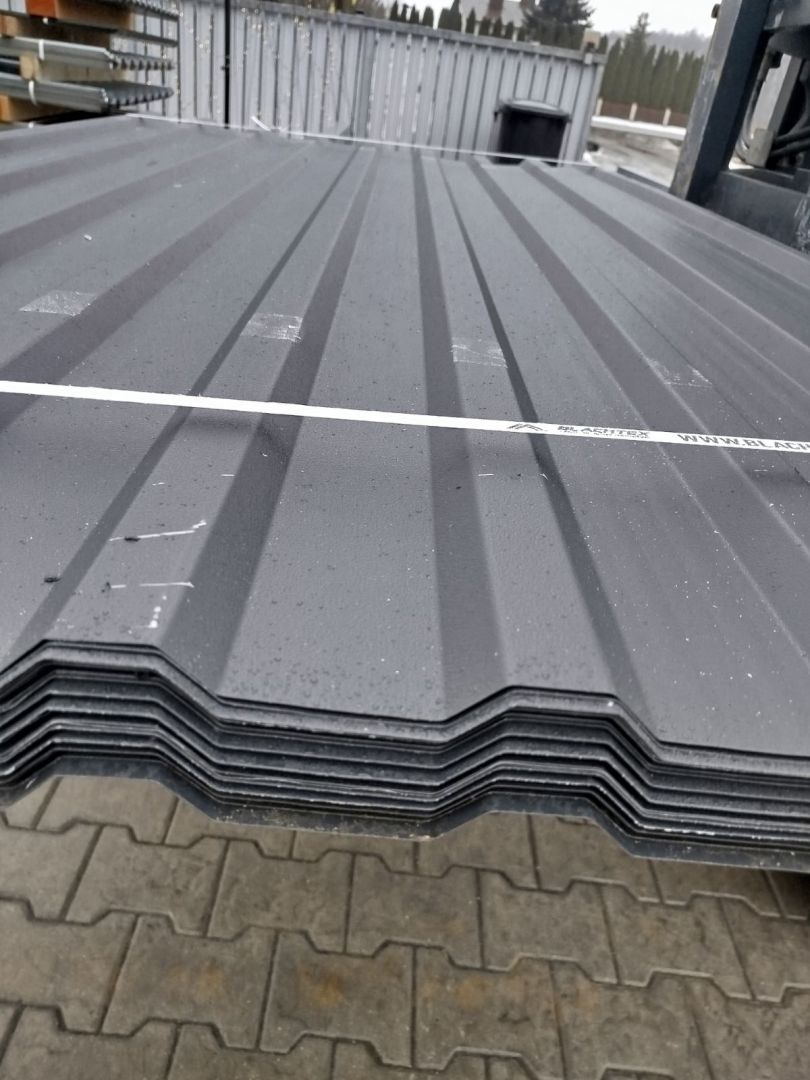 Sprzedam blachę trapezową T-13/T-18 grafit mat lub połysk – towar II gatunku. Blacha może posiadać wady powłoki takie jak zarysowania, odkształcenia i różnice w odcieniach.