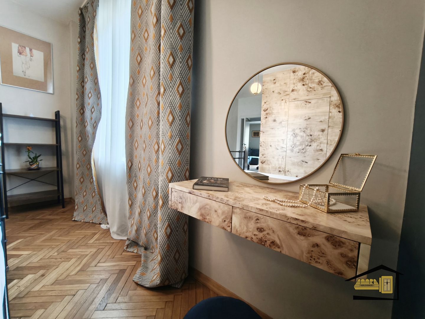 Sypialnia z garderobą: Prawdziwy atut tego mieszkania – oddzielne pomieszczenie garderobiane w sypialni pozwoli Ci zapomnieć o wielkich szafach i utrzymać idealny porządek.